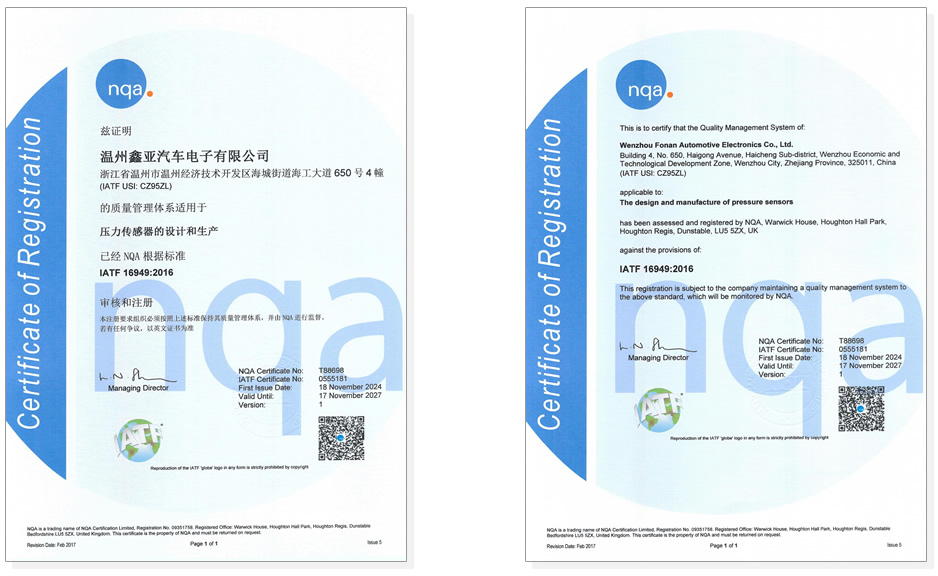 鑫亞汽車電子成立于2010年,總部位于中國溫州,擁有先進的生產(chǎn)設(shè)施,配備先進的制造技術(shù)和檢測設(shè)備。我們經(jīng)驗豐富的工程師和技術(shù)人員團隊致力于開發(fā)和生產(chǎn)高效、可靠、安全的高品質(zhì)汽車傳感器和電子元件。